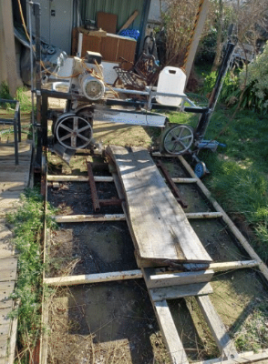 Through a contact I met via work I came across a bandsaw mill that has been build for cutting slabs, boards, planks etc. Nothing too dramatic but a serviceable old beastie.